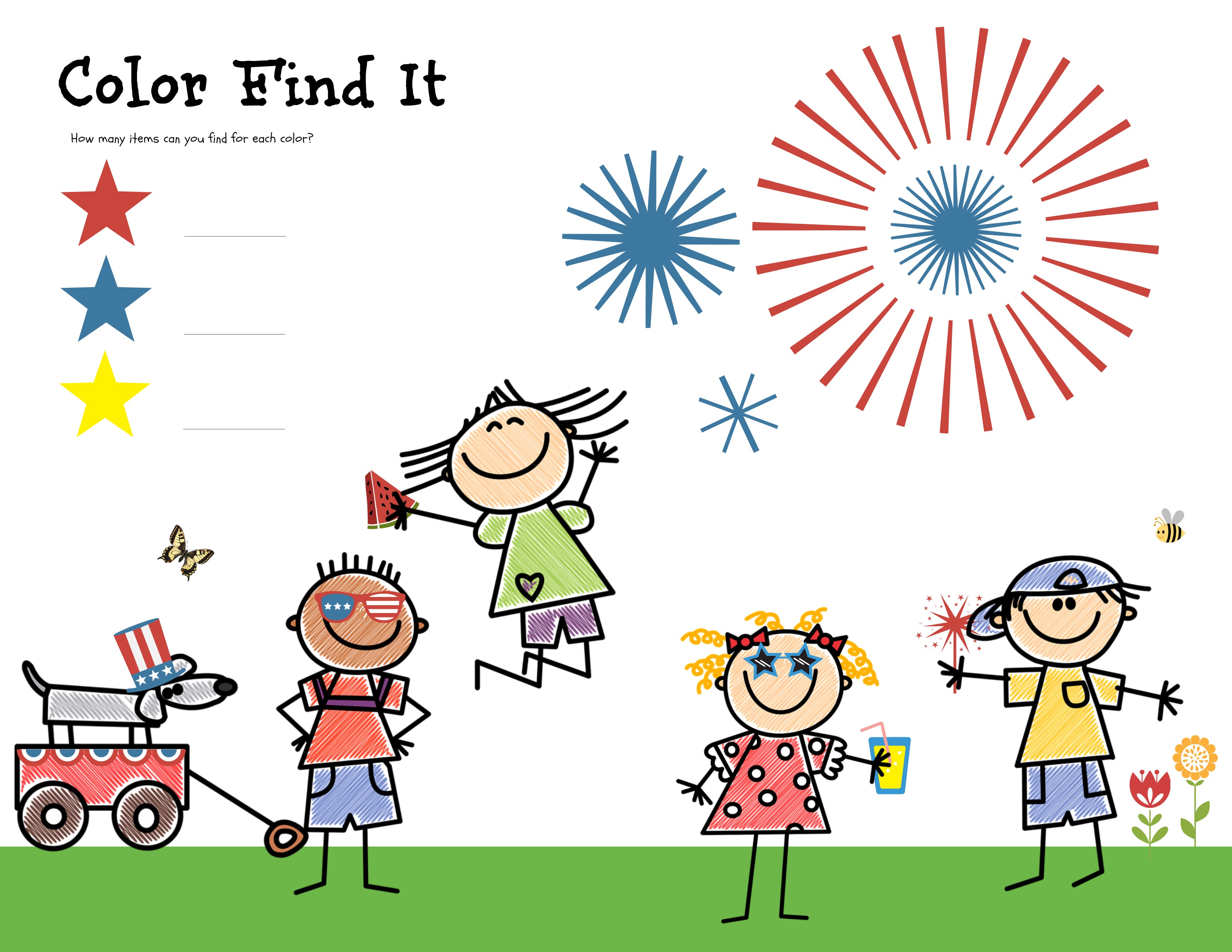 Looking for another easy kids activity to celebrate Independence Day? Check out my free, printable Color Find It. It’s a great I-spy puzzle for young tots! Click here to view the PDF.
