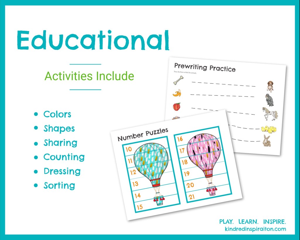 - Number Puzzles offer a wonderful way to introduce higher digits to young toddlers. I chose two hot air balloons because they reminded me of one of my friend’s kids (whose nursery was decorated with them), and it marked a fun way to introduce a unique mode of transportation that young toddlers may not have seen before.