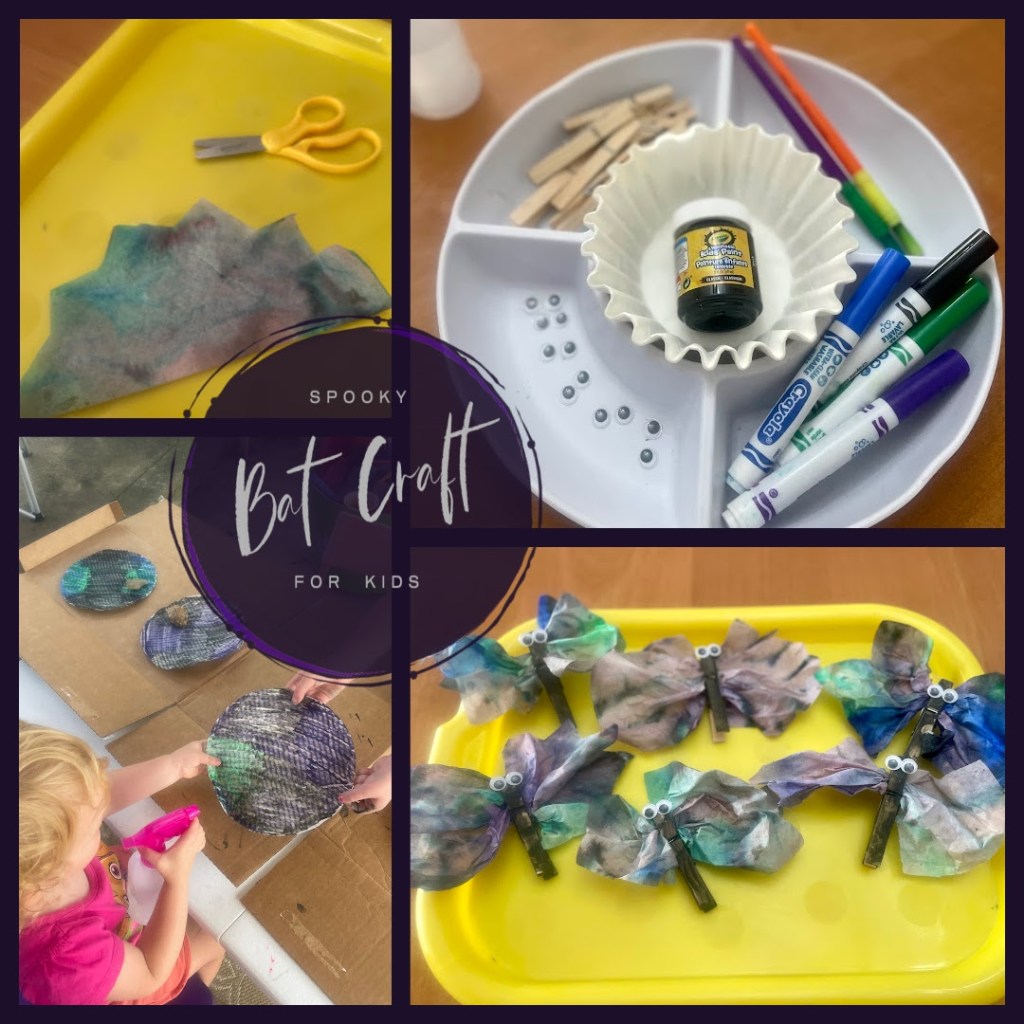 Her excitement is contagious as I spend my evening scrolling Halloween-themed crafts, activities, and recipes we can do together. One craft that really stuck out this year was making bats out of coffee filters. We’ve used a similar technique to make butterflies and poppy flowers out of coffee filters, so I knew that this project would be a messy hit with my kids.