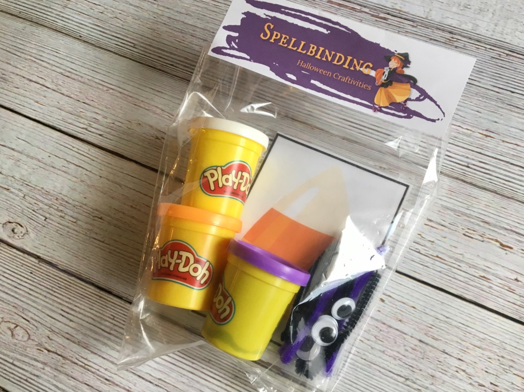 Here’s a look at how to assemble my spooky craft kits. Links to download PDFs of the bag toppers and kids activities are available at the bottom of this blog post. Enjoy!