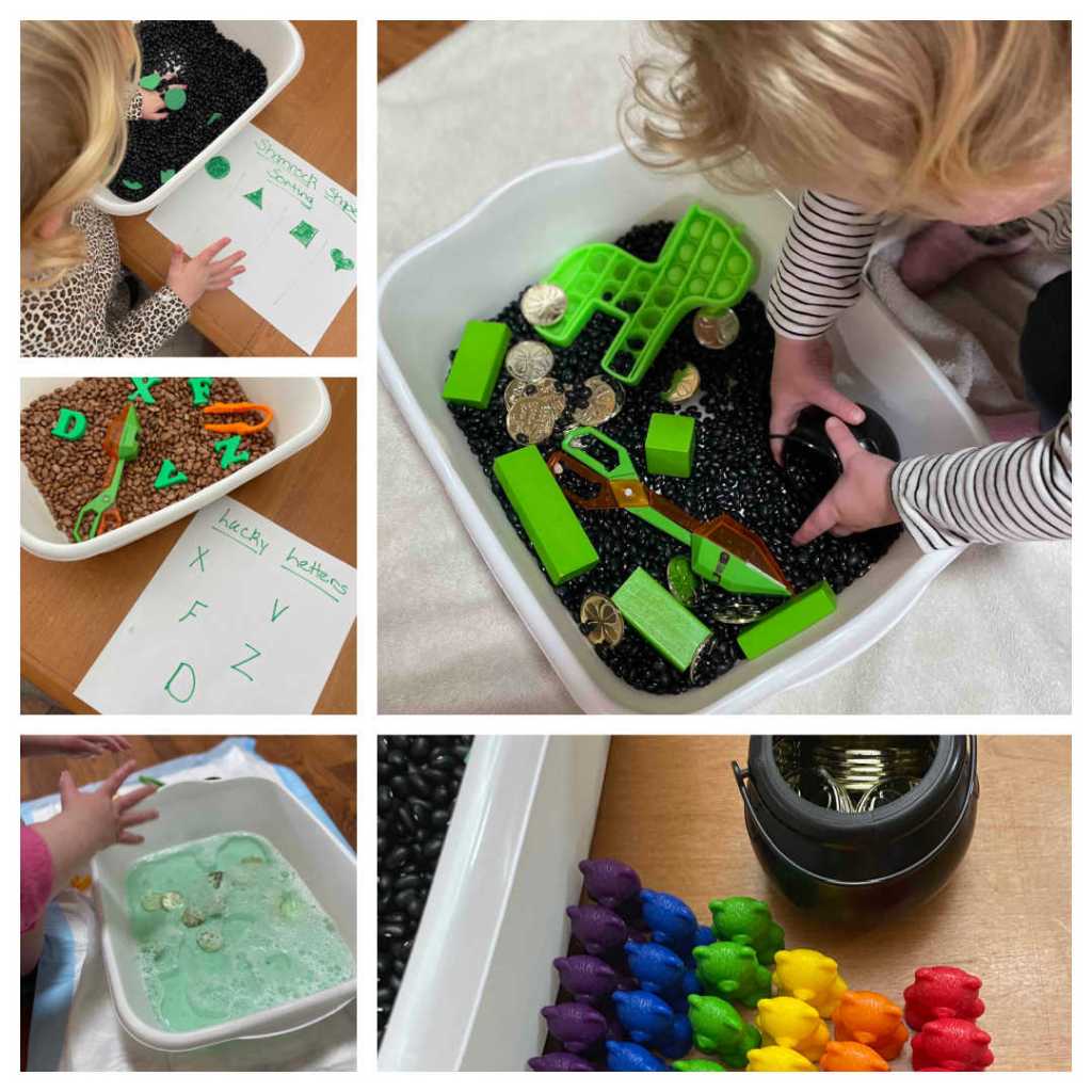 St. Patty’s Day marks a fun time to put an Irish spin on kids activities, crafts, games, and sensory play. This year, we had a lot of fun creating St. Patrick’s Day themed sensory bins, crafts, games, and snacks. Here are 5 easy, low-prep activities to celebrate St. Patrick’s Day with young kids.